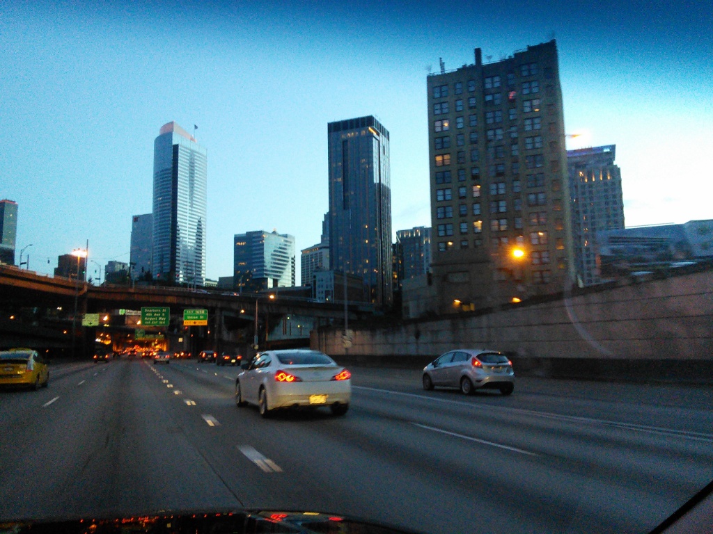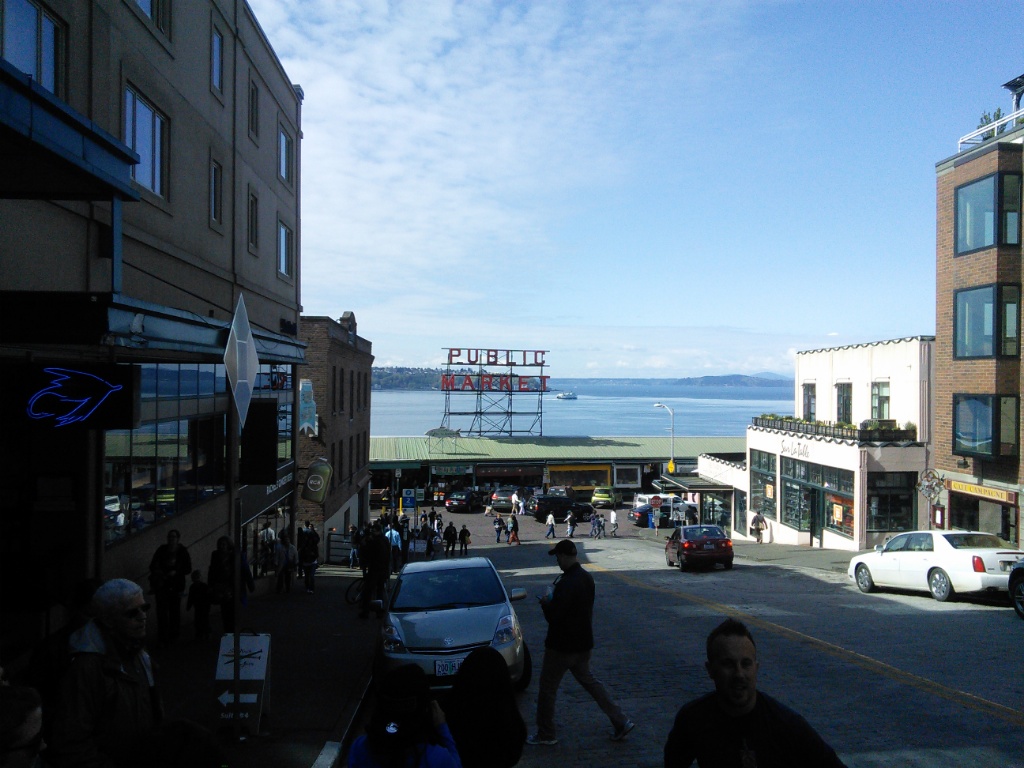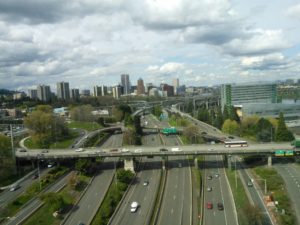 Größer, höher und steiler als Portland. Wenn man auf der „Interstate 5“ entang nach Seattle fährt, wird man von einer beeindruckenden Skyline empfangen, dann fällt einem sofort der sehr, sehr dichte Verkehr auf, nur gut, dass unser Hotel direkt neben dem Zug in die Innenstadt gelegen ist 😉 Was uns auf dem Weg in die Stadt besonders aufgefallen ist, ist eine Fahrspur, die nur für Autos mit 2 oder mehr Personen gedacht ist. Auf dieser Spur war deutlich weniger los, während die anderen im Stau standen.
