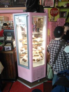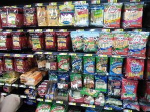 Ja, es gibt die elektrischen Fahrzeuge, mit denen man im Markt herumfahren kann wirklich, wir haben sie ohne Einkauf sehr schwer beladen gesehen! Davon gibt es aus ästhetischen Gründen keine Fotos… Neben Hotdog-Slic’rn und meterlangen Bacon-Regalen gibt es da wirklich alles.