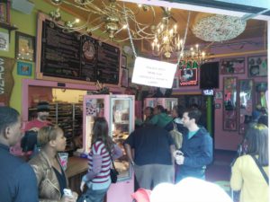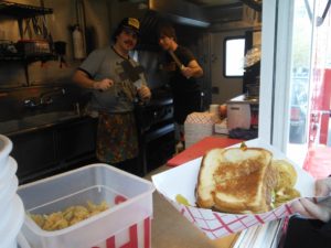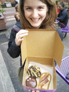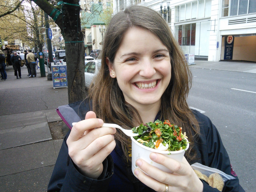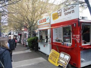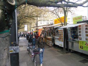 Das Tollste hier ist aber auf alle Fälle das Essen! Angefangen haben wir heute mit einem Avocado-Omlett, weiter gings mit Doughnuts, dann gabs Cheesus und zum Abschluss haben wir eine Box Koriander-Bohnen-Curry aufgegessen 🙂 Es gibt hier an vielen Plätzen die auf den Bildern zu sehenden Foodcarts. Jeder der Wägen bietet andere Speißen aus anderen Ländern, man müsste alleine fürs Durchkosten eine Woche bleiben. Oder wiederkommen 😉