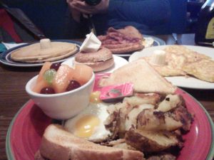 Den restlichen Weg nach Port Angeles wollten wir uns durch eine Fährfahrt um ca. 30 Meilen verkürzen, allerdings mussten wir am Hafen erfahren, dass (wegen der Osterfeiertage) alle Fähren an diesem Tag in der Gegend ausgebucht waren… Aus einer 30 Meilen Abkürzung wurde so ein Umweg von mehr als 260 Meilen… statt um 5pm waren wir um 11pm in unserem Motel… Das war allerdings sehr nett, sauber und bequem :)… Als Entschädigung sind wir jedoch bei Sonnenuntergang unter Seattle durchgefahren, was wirklich toll war.