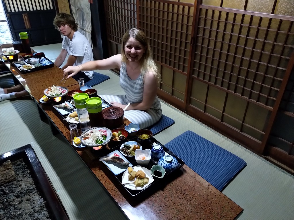Zu Beginn haben wir uns in einem traditionellen Ryokan einquartiert, das ist ein original japanisches Hotel. Wir haben auf japanischen Futons die auf Tatami-Matten ausgebreitet waren geschlafen, abends in den hauseigenen Onsen entspannt, und morgens japanisches Frühstück genossen. So eine Übernachtung sollte man auf jeder Japanreise einplanen, die Aufenthalte sind gerade beim ersten Mal ein Erlebnis. Paul hat sich nach zwei Nächten jedoch schon sehr auf ein gewöhnliches Bett gefreut.