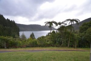 Nach unserem Ausflug ins grüne Hügelland von Mittelerde ging weiter Richtung Schicksalsberg – Mount Ruapehu. Zwischendurch haben wir ein paar Orte besucht, an denen wir Christinas gefürchteten Schwefelgeruch nicht entkommen konnten. Rotorua, bekannt für seinen typischen Schwefelsauerstoffgeruch, gilt als Kurort. Wir können uns absolut nicht vorstellen wie man hier entspannen soll, wobei, vielleicht gewöhnt man sich mit der Zeit ja an den Geruch. Wir haben uns den Lake Rotorua mit seiner milchigen Schwefelfarbe angesehen und sind dann noch zum Green und Blue Lake gefahren, wobei wir farblich keine markanten Unterschiede erkennen konnten. Mag sein, dass das mit dem etwas regnerischen, bewölkten Wetter zu tun hatte. Das Wetter ändert sich hier (gefühlt) alle 15 Minuten, blauer Himmel – Regen und Sturm – Sonnenschein – leicht bewölkt…..