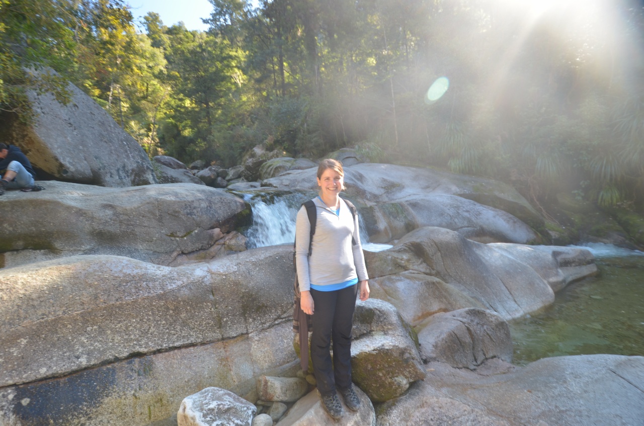 Unsere Tageswanderung begann mit einer Wassertaxifahrt zur Bark Bay begonnen und hat nach ca. 29 km – Christina wollte unbedingt einen Umweg zu den Cleopatra Pools gehen (+5 km) – wieder im Startdorf Marahau geendet. Die Wanderung war wirklich wunderschön, das Wetter war hervorragend – das Warten in Wellington hat sich ausgezahlt.