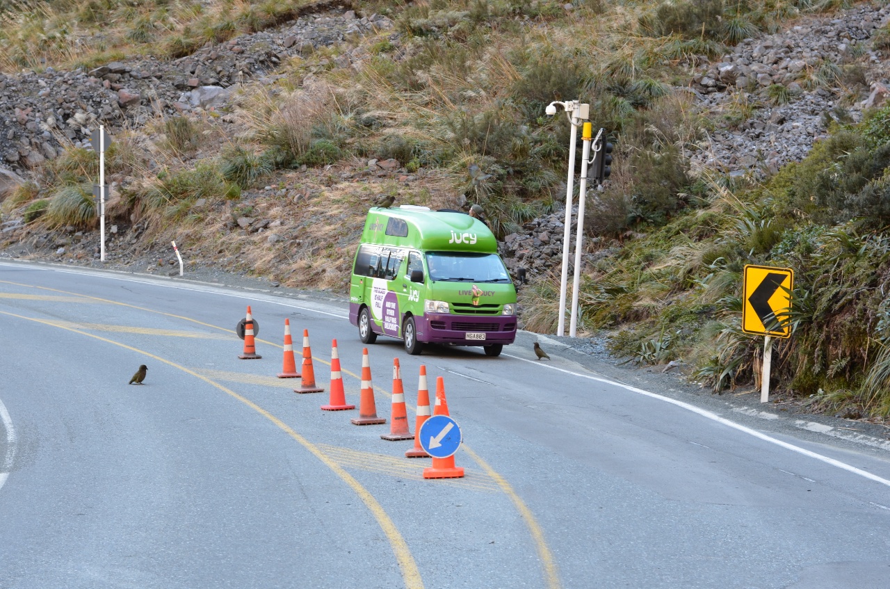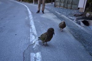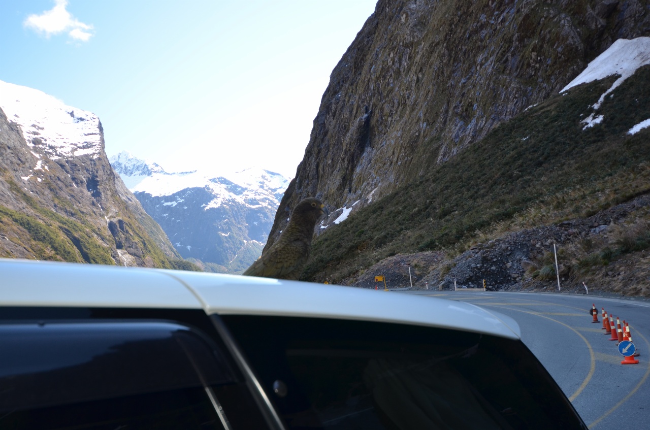 Die Meinung über die Keas geht bei uns beiden etwas auseinander 🙂 Paul findet die sehr süß, Christina schimpft immer mit ihnen, wenn sie ihr oder unserem Auto zu nahe kommen. Als sich drei von ihnen auf unser Auto gesetzt haben während wir beim Homer Tunnel auf das grüne Ampelsignal warteten, wars vorbei mit Christinas Sympathien für sie. Zum Glück kam ein anderes, Auto, das sie dann noch interessanter fanden. Es war dann aber sehr lustig anzusehen, wie sich die nächsten mit dem Problem herumgeärgert haben. Deren Auto war nur viel höher und sie mussten mit 6 Keas kämpfen 😀
