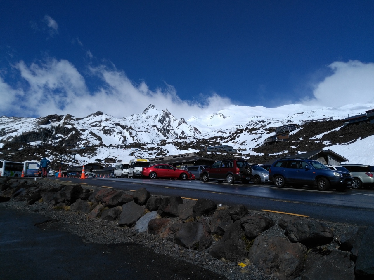 Wir fuhren trotzdem in den Tongariro Nationalpark und sahen uns die beeindruckenden Vulkane, mit ihren schneebedeckten Spitzen aus der Ferne an und machten eine kurze zweistündige Wanderung. Dieser Spaziergang durch Mordor hat uns keinerlei Orksichtigungen beschert, wir wissen jetzt allerdings wie Sauron seinen Schicksalsberg in der „off bad boy season“ benutzt – er finanziert sich in mageren Zeiten durch den Betrieb eines Skigebiets… Auch der Böseste von Mittelerde muss über den Winter kommen. Und Noch eine Einnahmequelle – Sauron scheint das Grand Budapest Hotel zu betreiben. Wirklich beeindruckend.